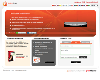 Bitdefender QuickScan est un scanner antivirus en ligne proposé gratuitement par le célèbre éditeur de programmes de sécurité. Il analyse votre ordinateur en 60 secondes pour détecter la présence de virus, rootkits et keyloggers.